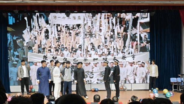 激昂的歌曲《着魔》余音未落,舞台的焦点已转向红色话剧《致青春》,演员们以饱满的热情,再现了五四运动中革命青年的热血担当;古典舞《念琵琶》随即以柔美的身韵登台,一颦一步间尽显含蓄婉约的东方之美;而创意改编剧《甄嬛传之内卷风波》接续登场,凭借诙谐的台词与夸张的表演,瞬间点燃全场欢笑。深情的革命叙事与轻松幽默的校园故事相得益彰,激昂的歌声与优美的舞姿交相辉映,既展现了航空学子多才多艺、全面发展的精神风貌,又通过多元化的艺术表达将现场气氛不断推向高潮。