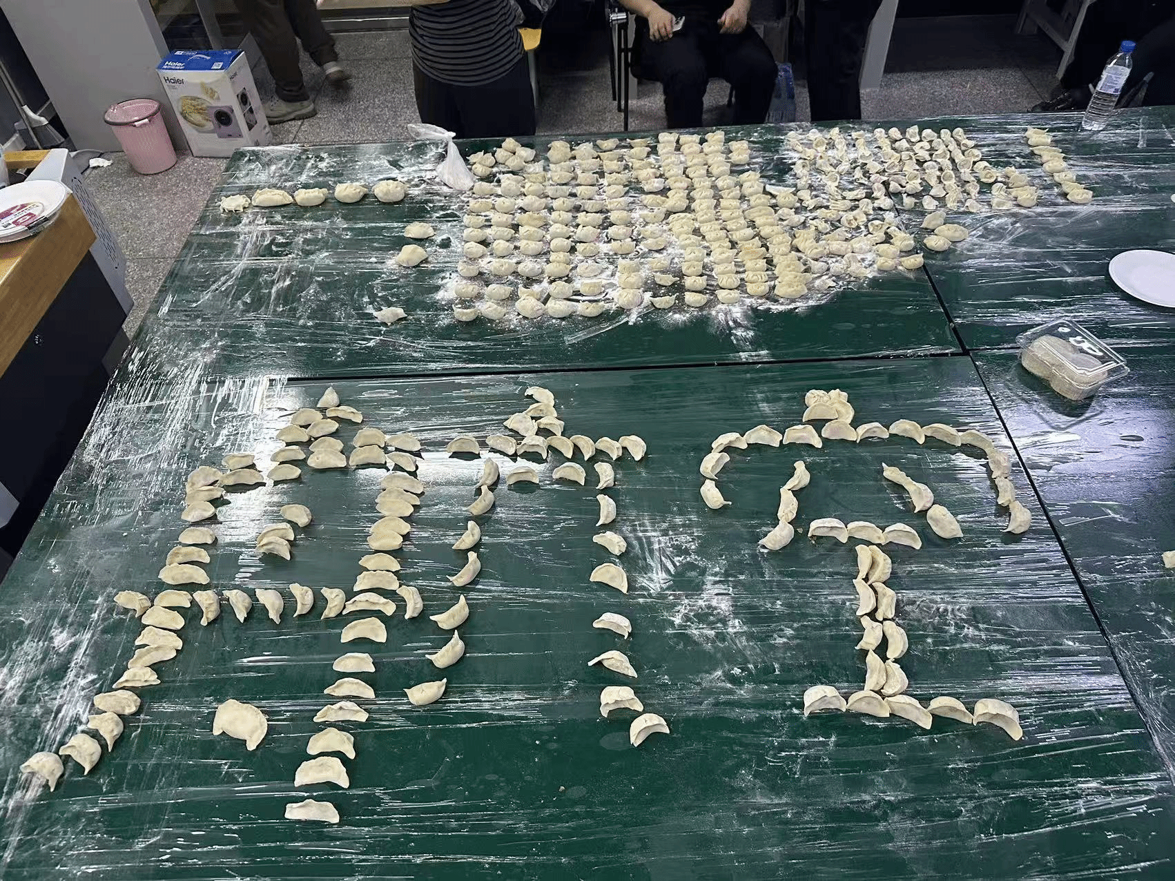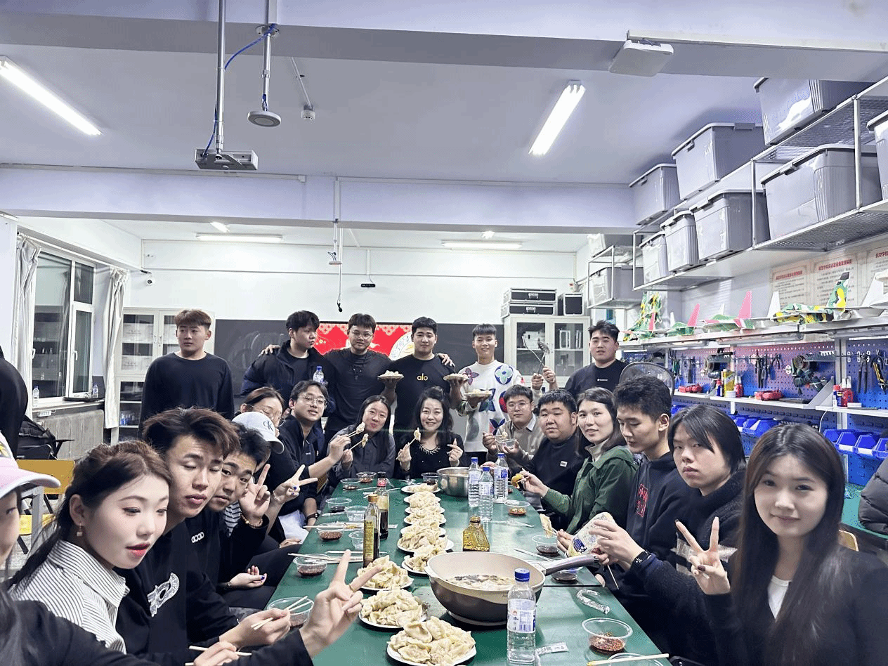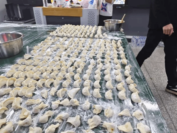 活动现场欢声笑语,师生们围坐一起,分工协作,纷纷上手包饺子。学院领导也融入其中,与同学们亲切交流。餐盘中很快摆满了形态各异的饺子,元宝形、月牙状乃至种种“创意作品”,引得笑声不断。大家兴致渐浓,又即兴包起馄饨、下起面片,小小空间里洋溢着创造乐趣与家一般的温暖。