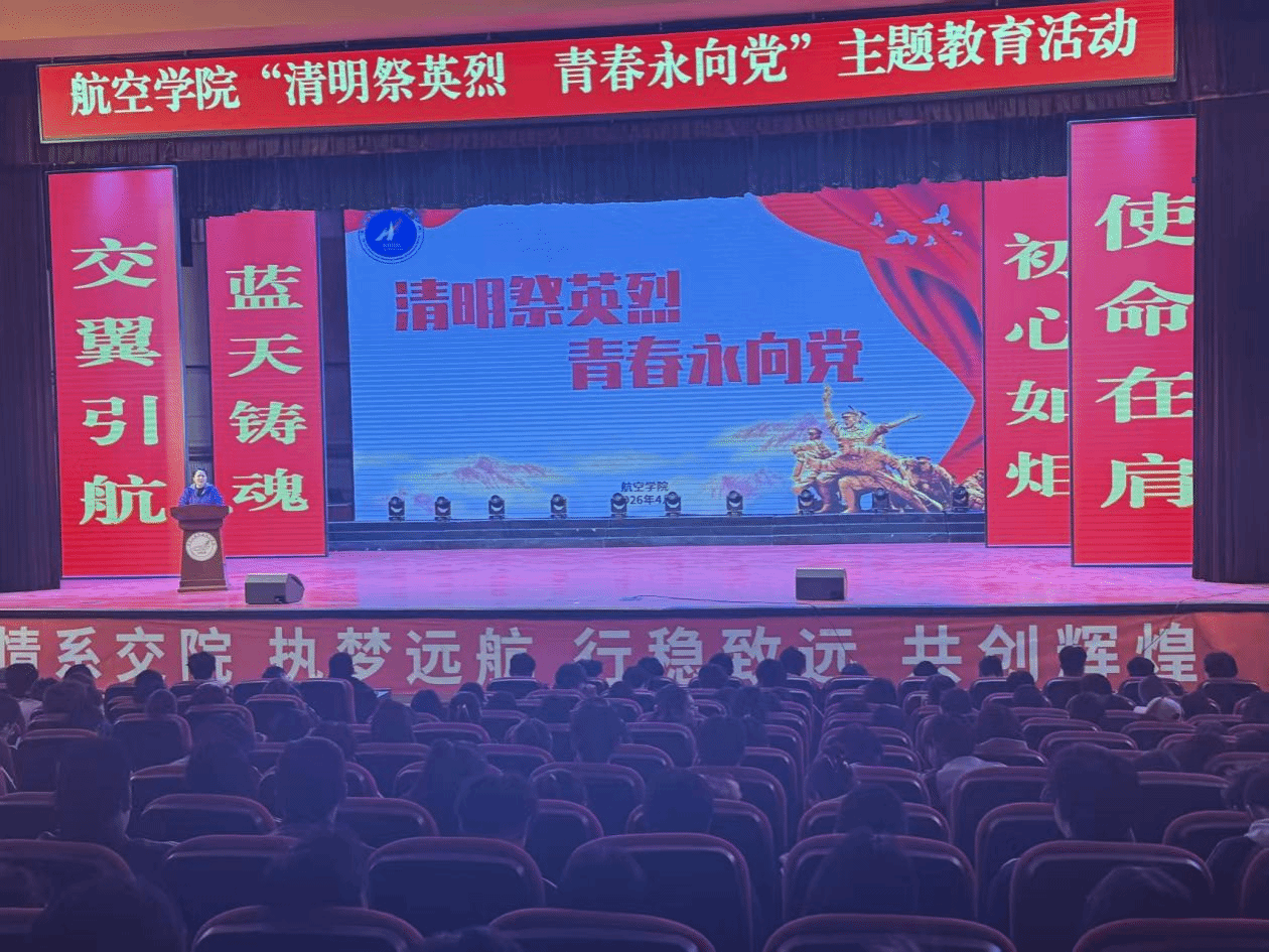 4月1日,学院在大学生活动中心举办“清明祭英烈 青春永向党”主题讲座。党总支副书记卢颖主持讲座并作专题报告,学院全体辅导员及2025级全体同学参加活动。她在报告中深情回顾了革命先烈为民族独立和人民解放事业英勇奋斗的光辉历程,并结合航空事业发展历程,讲述了航空领域英烈们为祖国蓝天事业献身的感人故事。她勉励全体同学要铭记历史、珍惜当下,继承先烈遗志,刻苦学习专业知识,努力成长为德才兼备的航空人才,为建设航空强国贡献青春力量。